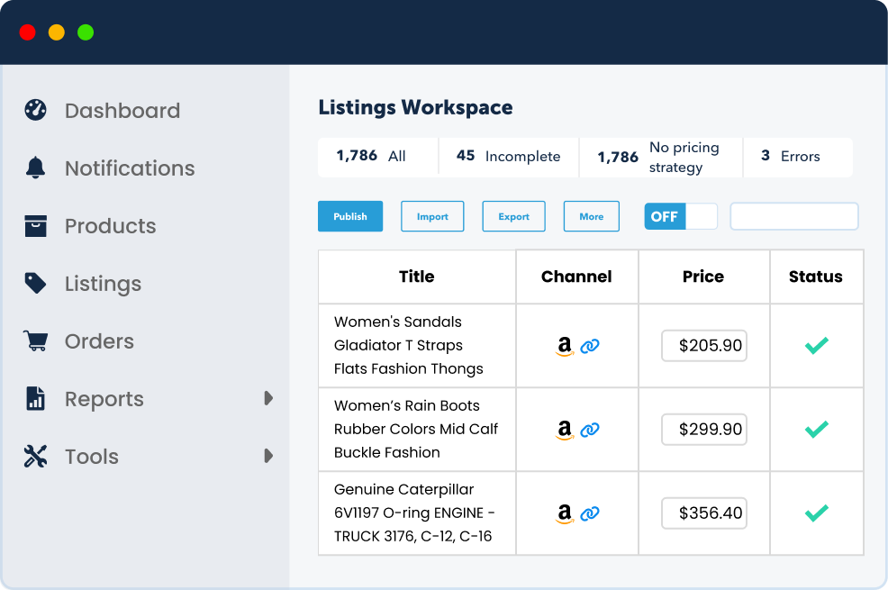 Use AI to assist in mapping data and managing listings across channels like Amazon, Google, Walmart and eBay