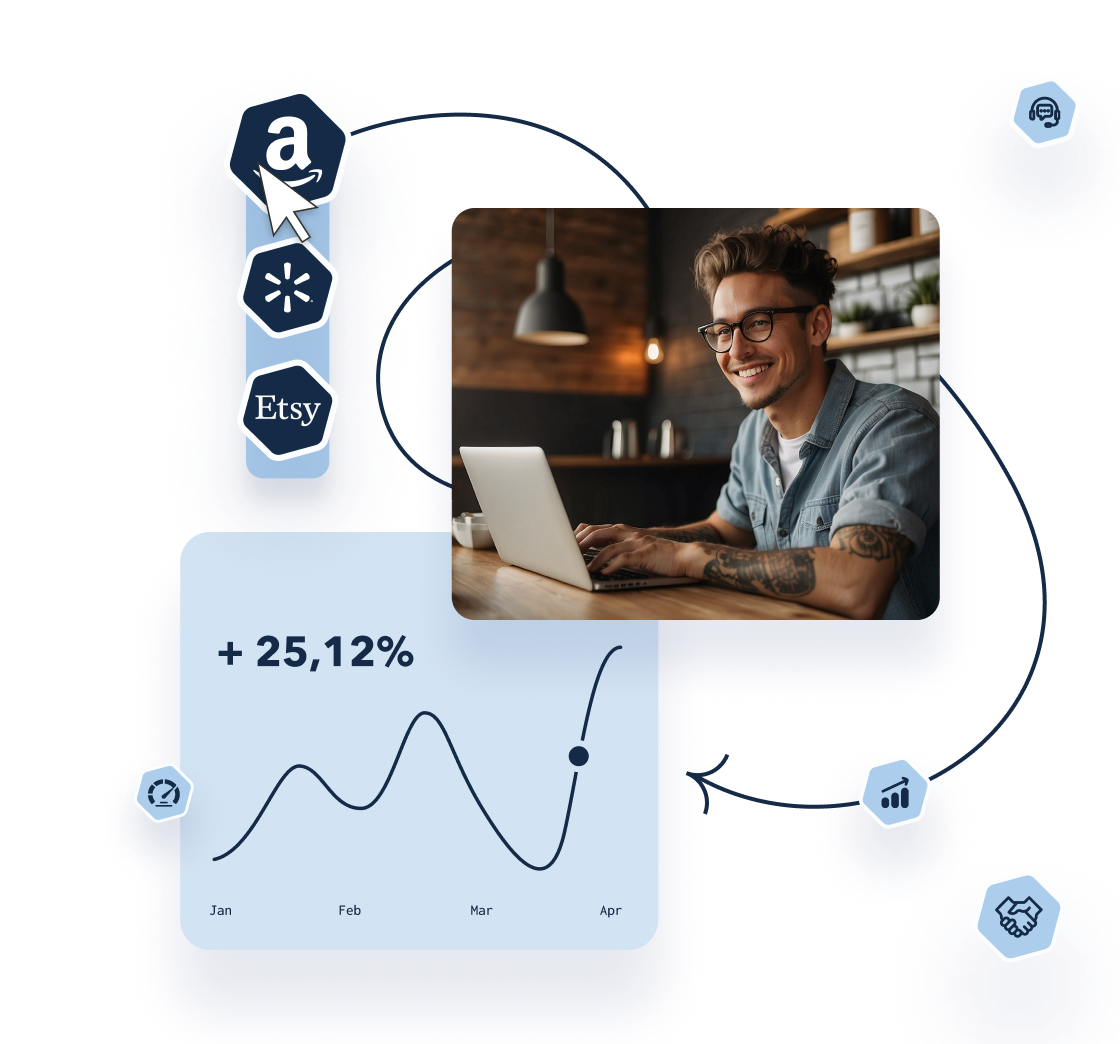 Join new marketplaces and grow your reach with a click of a button. Our expert services can also help accelerate your success.